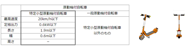特定小型原動機付自転車とは、主に以下の基準に該当するものです(改正法17条3項、2条1項10号ロ)。